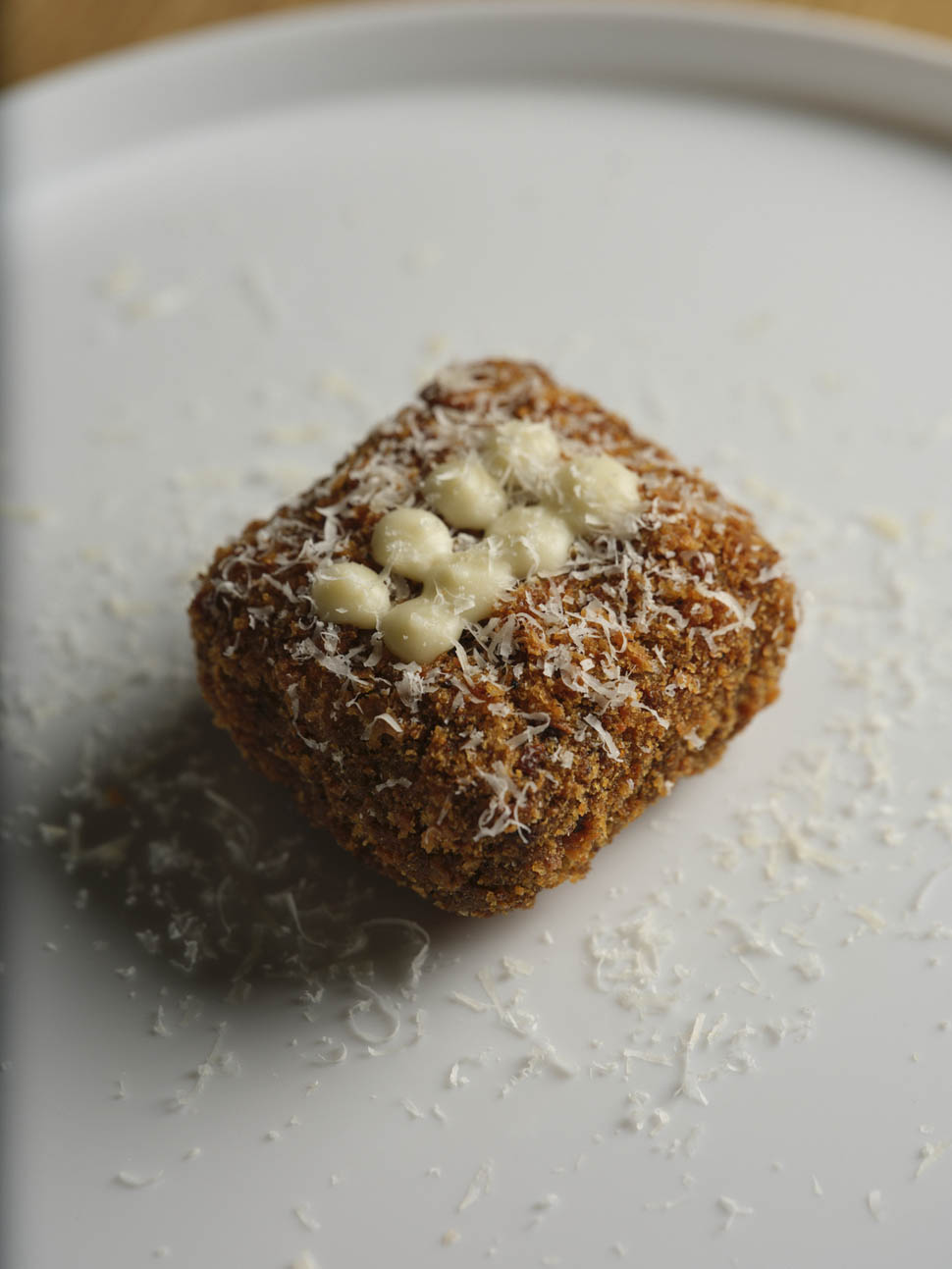 A firm pulse on the handling of only seemingly “rustic” seasonings emerges instead from the Buffalo Genovese, a back-and-forth between the gangly meat and the invigorating lemon gel centered by Giammarco and Antonio. “Even one drop too many can alter the whole, so we did test after test to reach the perfect acidity point.” In the home stretch, however, it is the mint that washes away the last remnants of fattiness from the animal part.