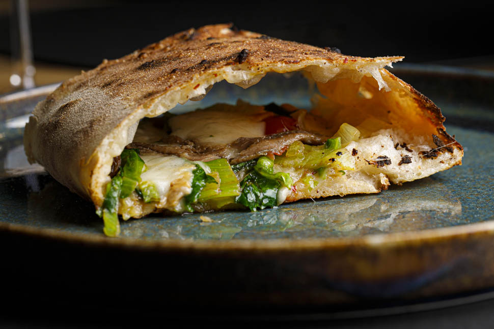 A bite on the edge of balance between the mellowness of the tuber -filling the cheeks with its almost nutty return- and the lively tempering of the outer shell. Similar in concept, but different in outcome, is the multilayered ingot of the Lasagna di broccoletti e salsiccia, which depending on the season happens to be found as well with the “Chiacchietegli di Priverno,” rare long-leafed vegetables from the area distinguished by purplish inflorescences and calm scents. “They have a gentle persistence that imprints the stamp of the territory on the palate; for our village they represent an important Slow Food Presidium,” Antonio explains. In short, the single-portion Sunday lunch at your fingertips: a kissed rhyme of pasta sheet and rustic filling. Whatever the choice, “the breadcrumbs are always assembled from our bread with liquid sourdough, which we bake exclusively for self-production, taking the surplus home in a no-waste perspective.”