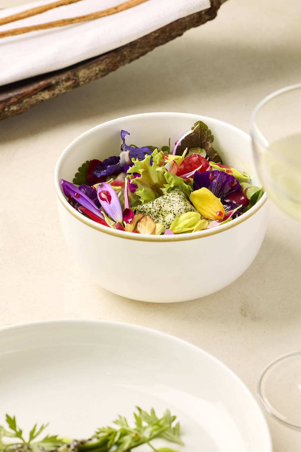 The Horto experience begins with a taste that is a statement of intent: young peas, nepitella whipped cream, and sturgeon caviar. A dish in which the sweetness of spring meets the aromatic freshness of nepitella and the elegant flavor of caviar, offering a surprising and balanced start.