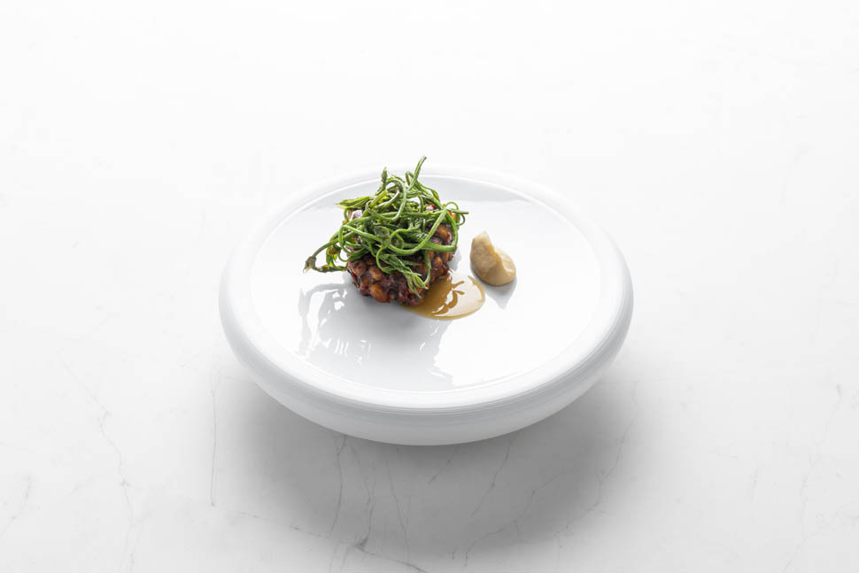 Is there a reason why you are fascinated by this combination of flavors? We ask him. “Perhaps not, because first and foremost I cook what I like to eat.” So where does this pleasure in combining the two worlds come from? "I am very instinctive, personally, so I have never asked myself that question. Lavarello in cassola, for example, is the only dish that I have never taken off the menu in ten years. In its simplicity, it is very complex because it has a lot of ingredients. It has always remained on the menu because I strongly believe that certain fish and meats go well together, and many of them can have a surprising similarity." An instinctive chef, virtuoso and dreamer to say the least, with the face of a boy but the hands of a veteran who puts a high and concentrated dose of thought into his dishes. Like the new fish and meat.