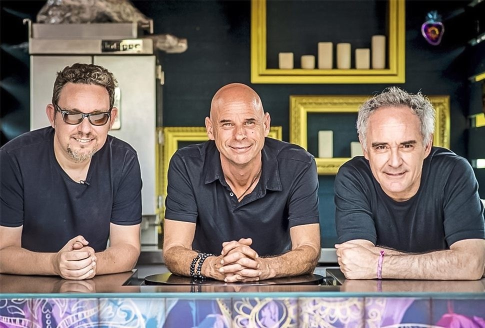 La cena si configura come un momento gastronomico variegato e cosmopolita, all’insegna di piatti ideati ad hoc dai fratelli Adriá, tra cui la zuppa orientale di astice o il bonito alla catalana.