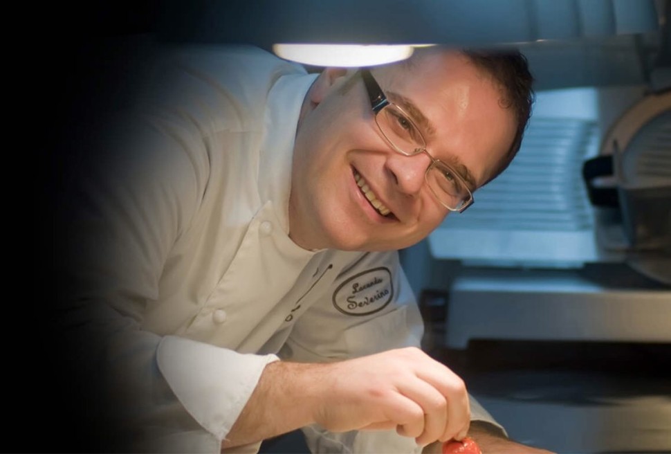 <La Locanda Severino, con i suoi 6 tavoli, l’imperiale nel privé e le quattro camere d’atmosfera dentro un palazzo ottocentesco, arriva nel 2009, dopo l’incontro casuale con un dentista di paese in cerca del giusto cuoco. “Per sondare la sua apertura gli ho chiesto di organizzare una cena con 20 amici e darmi carta bianca. Se fossero stati soddisfatti, avrei potuto cucinare a modo mio. E alla fine mi ha consegnato le chiavi, è stato bellissimo”. Due anni dopo la stella, nel 2013 scatta la gestione in solitario. “Ho preso coraggio in seguito a una cena da Pierre Gagnaire, che da sempre considero il cuoco più geniale del mondo, mio secondo maestro ideale. Ricordo che mi sono messo a piangere per lo scossone. Mi sono chiesto: Se non avesse fatto quel che ha fatto, sarebbe diventato Pierre Gagnaire? Perché dovrei limitarmi, al pensiero che lavoro nella periferia e il mio pubblico non è tutto gourmet? Da allora ho iniziato a mettere in carta anche piatti più spinti”.