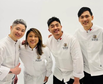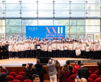 Esplosivo il bottone ripieno di seppia con mizuna, ostrica e limone in cui la pasta fresca è farcita con il mollusco; alla base una crema di lattuga mizuna e olio all’alga kombu affumicata, sopra invece un’ostrica e una puntina di gel di limone.