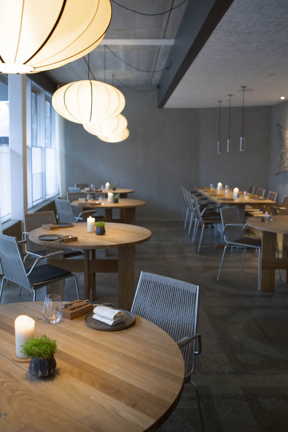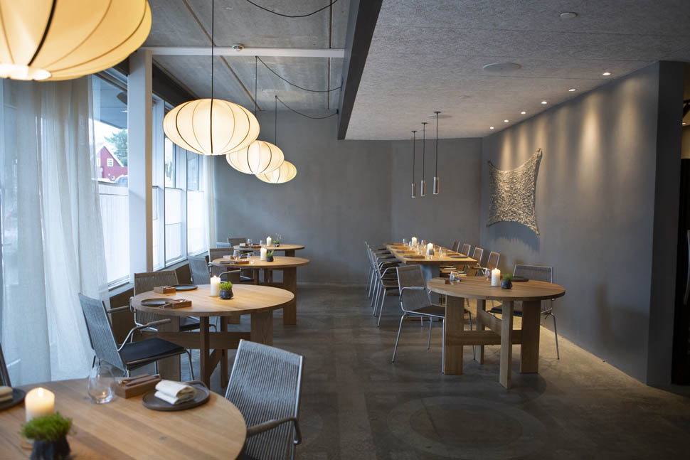 Alcuni dei piatti nel menu di questa stagione includono il Ræstur fiskur og garnatálg – patate cotte nel grasso fermentato di intestino di agnello; il flan di alga bruna arrosto con salsa di corbezzoli fermentati; una tartelletta di alghe con merluzzo stagionato, ricci di mare e pine kosho; oppure la lumaca di mare con radici sottaceto e dashi di cozze blu.