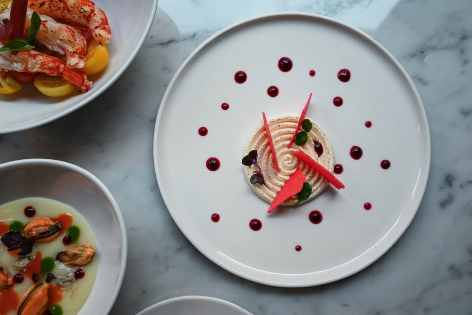 Nel capitolo dolcezza, la panna cotta alla vaniglia con lamponi che ritroviamo sia in gel che sotto forma di cialdone croccante rappresenta l'equilibrio perfetto tra tradizione italiana e presentazione contemporanea. La consistenza setosa della panna cotta, aromatizzata con vaniglia bourbon, trova il suo contraltare nella vivacità dei lamponi, proposti in due diverse texture: l'acidità concentrata del gel e la fragranza del cialdone che aggiunge quella componente croccante necessaria a creare un dessert tridimensionale. Un finale che racchiude l'essenza stessa del progetto Particolare Bistrot: radici italiane solide e uno sguardo curioso verso il mondo.