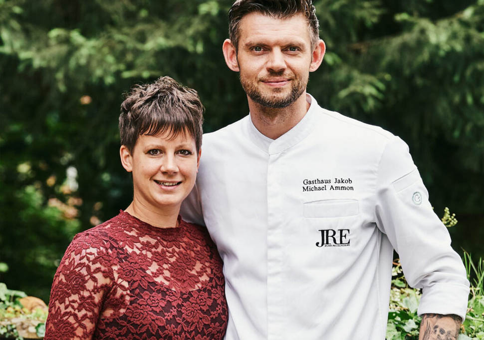 Quando Michael, insieme alla sua compagna Mona e al fratello Andreas, ha preso in mano le redini dello storico locale (una taverna situata in una rustica casa di campagna di 250 anni fa), le risorse a disposizione erano poche, ma la visione era chiarissima: dare nuova linfa a un’istituzione della zona, coniugando la tradizione gastronomica regionale con un tocco di creatività moderna. La strada non è stata semplice: “Abbiamo preso in gestione questo ristorante praticamente da zero, investendo ogni guadagno nella crescita dell’attività”, racconta Ammon a Rolling Pin. Ma la costanza ha dato i suoi frutti: nel 2020, il Gasthaus Jakob ha conquistato la stella Michelin, conferma di un’eccellenza costruita giorno dopo giorno, senza scorciatoie.