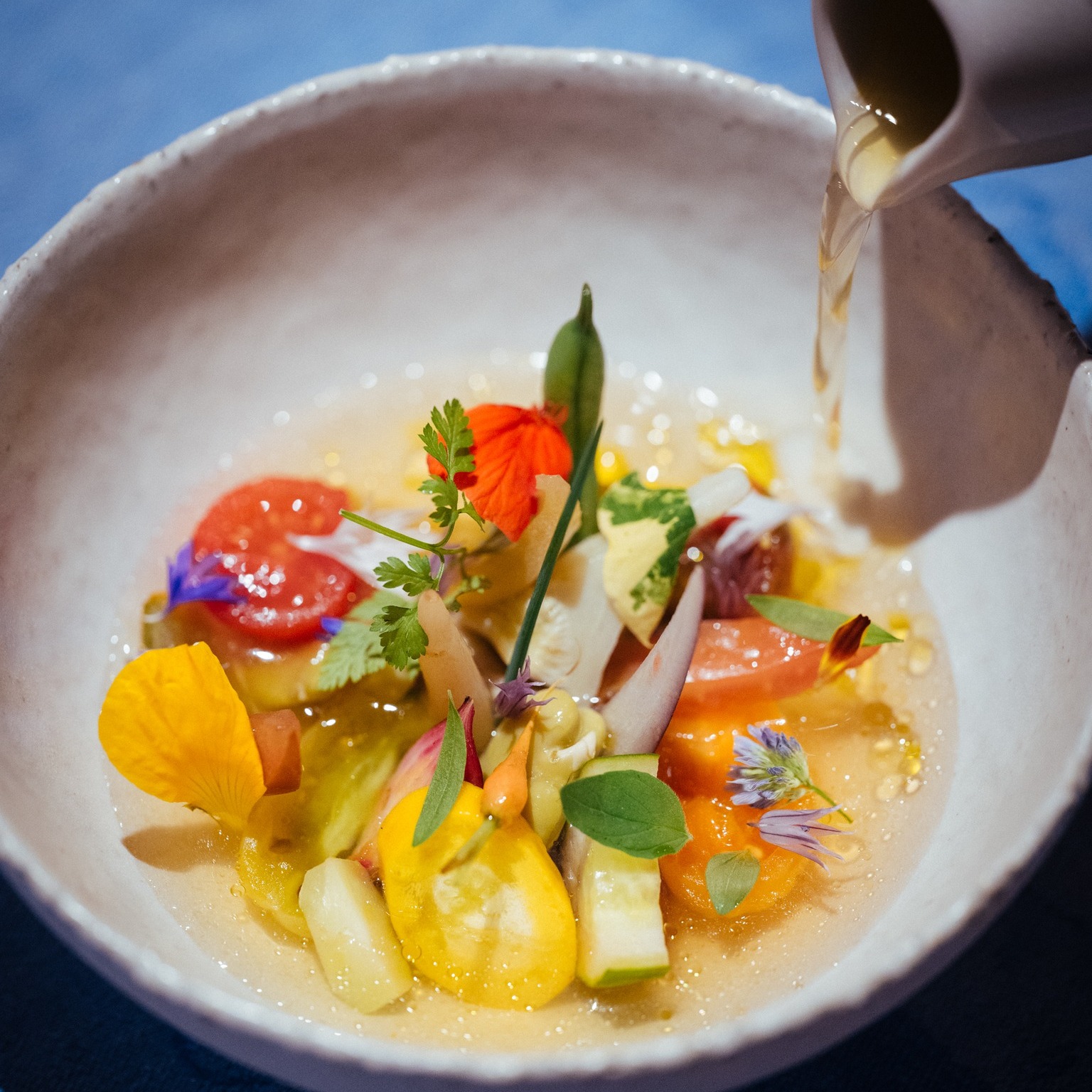 Qualche spoiler? "Stiamo facendo tantissime prove sul tofu nell'ottica di esplorare le potenzialità dei legumi, di cui il nostro paese è ricco. All'estero ne ho assaggiati di incredibili per ampiezza e intensità di sfumature. Poi le aromatizzazioni dei brodi: la componente liquida sarà centrale, generando un effetto coreografico 'mangia e bevi'". In parallelo si rafforza il fil vert della proposta, "certo non per moda, ma perché l'elaborazione del vegetale è un aspetto sfidante del mio lavoro. Non da ultimo, meraviglia l'ospite quando riusciamo a raggiungere picchi espressivi inaspettati".