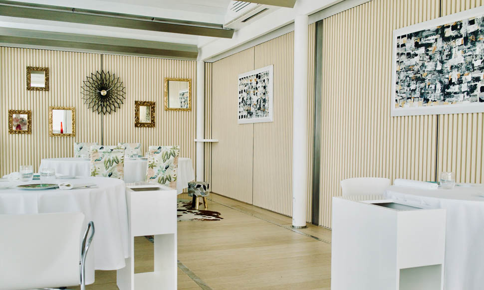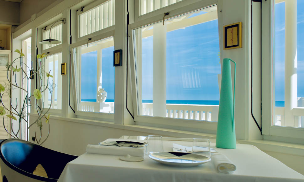 Il sole incendia mentre si attraversa il canale sulla passerella di legno che porta davanti al numero sei della Banchina di Levante, in un mercoledì di giugno, al ristorante Uliassi almeno cinque lingue diverse si assembrano in un vocio lieve che rimbalza fra le tende di lino ondeggianti alla luce. La brezza dell’Adriatico è sempre provvidenziale durante i pranzi estivi in veranda, con la vista inazzurrata più radiosa dell’alta cucina mondiale.
