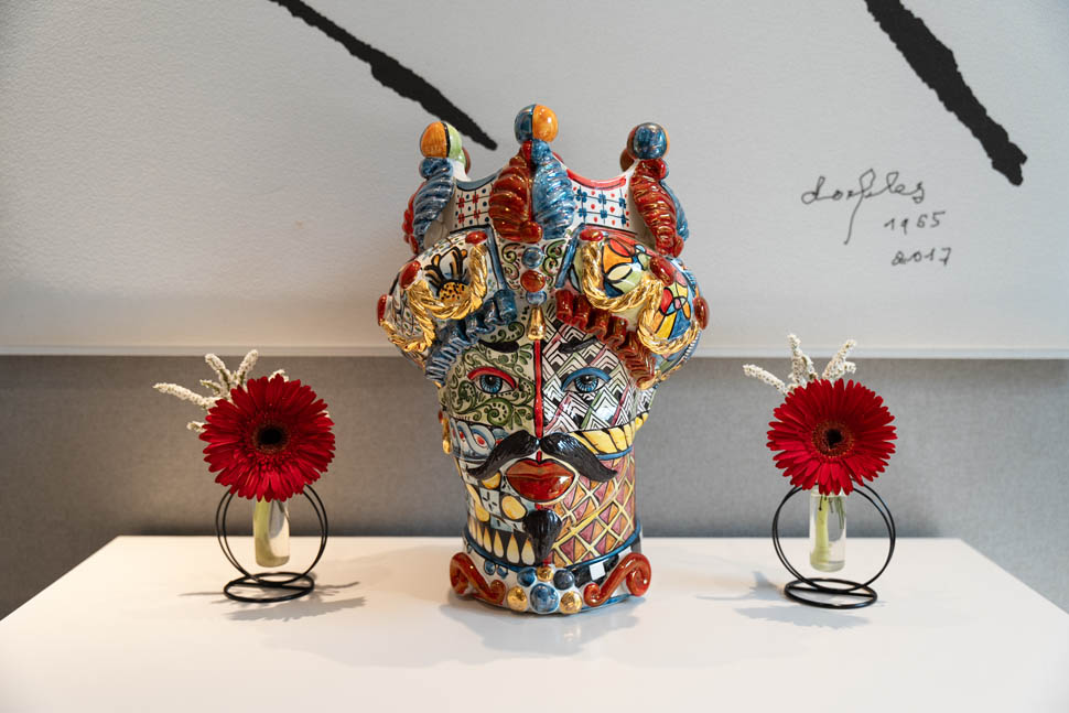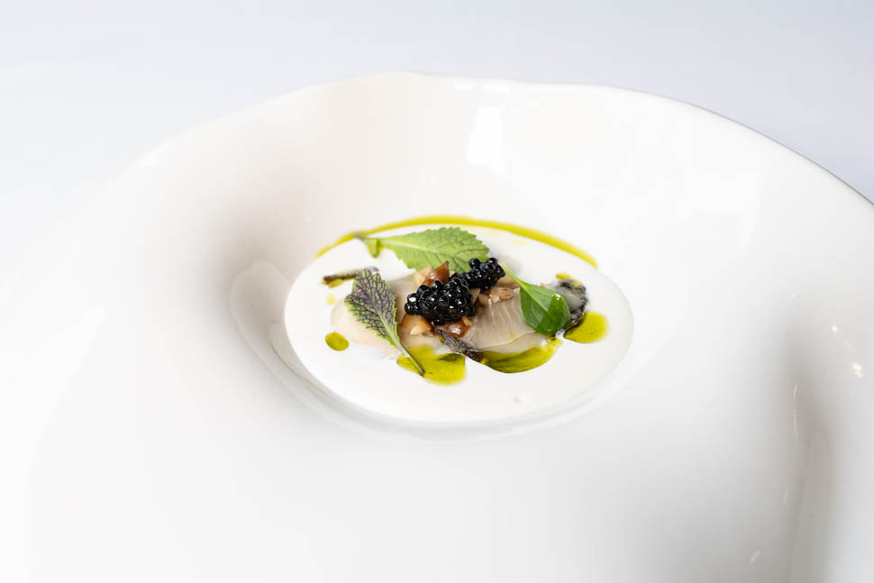 L’ambiente è curato con la stessa attenzione riservata ai piatti: design sobrio, elegante, mai eccessivo. Esposte le opere dell’artista Federico Casati, in collaborazione con Leogalleries, e dettagli ceramici provenienti dalla scuola di Caltagirone completano l’atmosfera. Ogni gesto, ogni dettaglio di sala è parte di un racconto armonico in cui forma e contenuto si sostengono a vicenda.