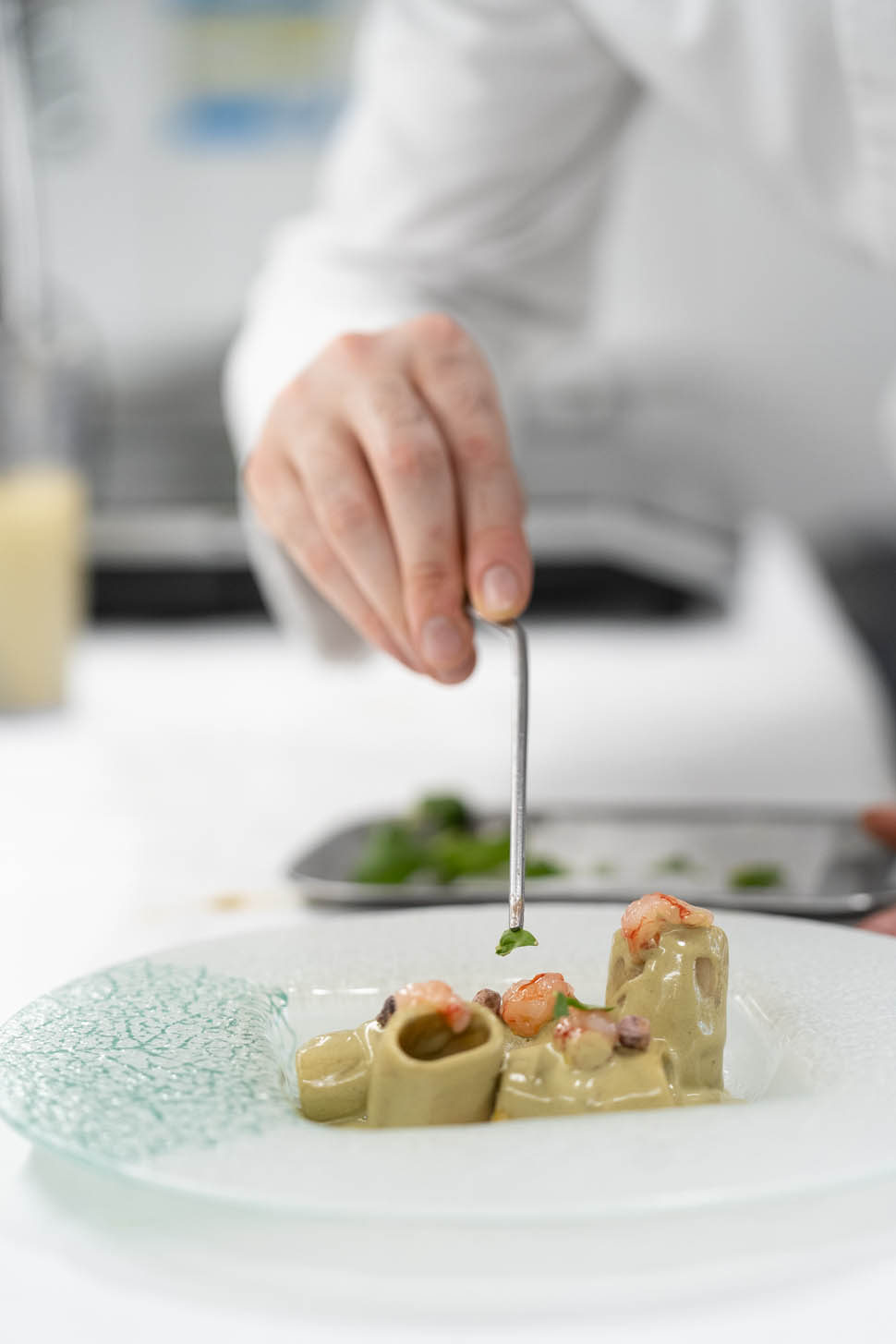 Il racconto della loro cucina si esprime chiaramente in tre piatti simbolo. L’Assoluto di gamberi e caponata è un omaggio viscerale alla Sicilia: dolce, acido, profondo come il mare. I paccheri Senatore Cappelli con gamberi di Sicilia rappresentano l’incontro fra eccellenza e semplicità: un piatto schietto, sincero. Il trancio di morone al vapore con salsa agli agrumi e finocchio, invece, guarda alla contemporaneità: leggero, raffinato, equilibrato. Questi piatti compongono il ritratto di una cucina che è insieme radicata e innovativa, solare e rigorosa.