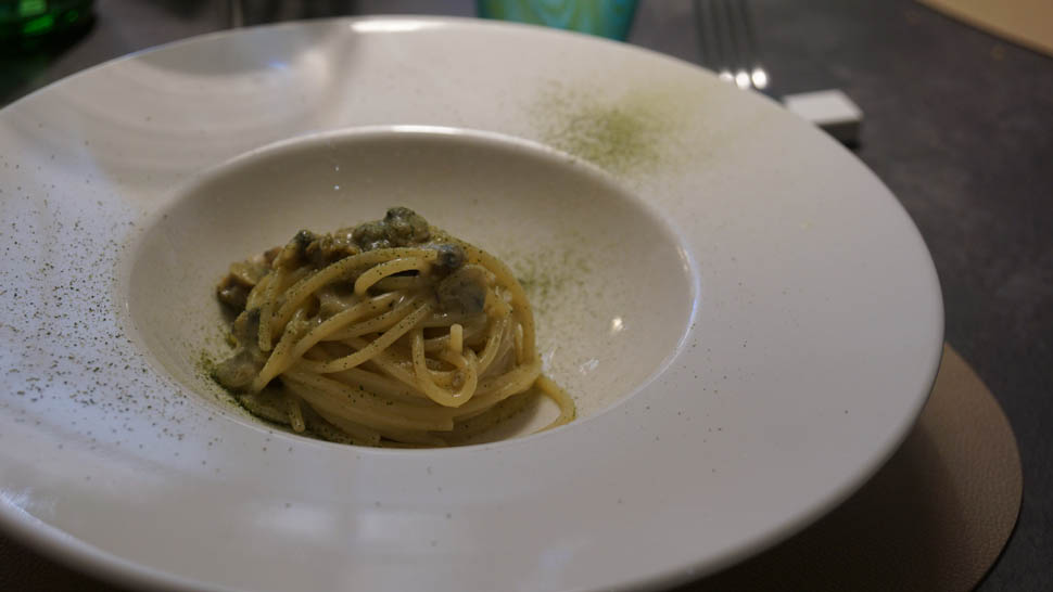Bella la combinazione di polpo e patate con Morar Shoots e le note dolci-piccanti tipiche del rafano. Gustosissimi e perfettamente al dente gli spaghetti alle vongole con polvere di prezzemolo.
