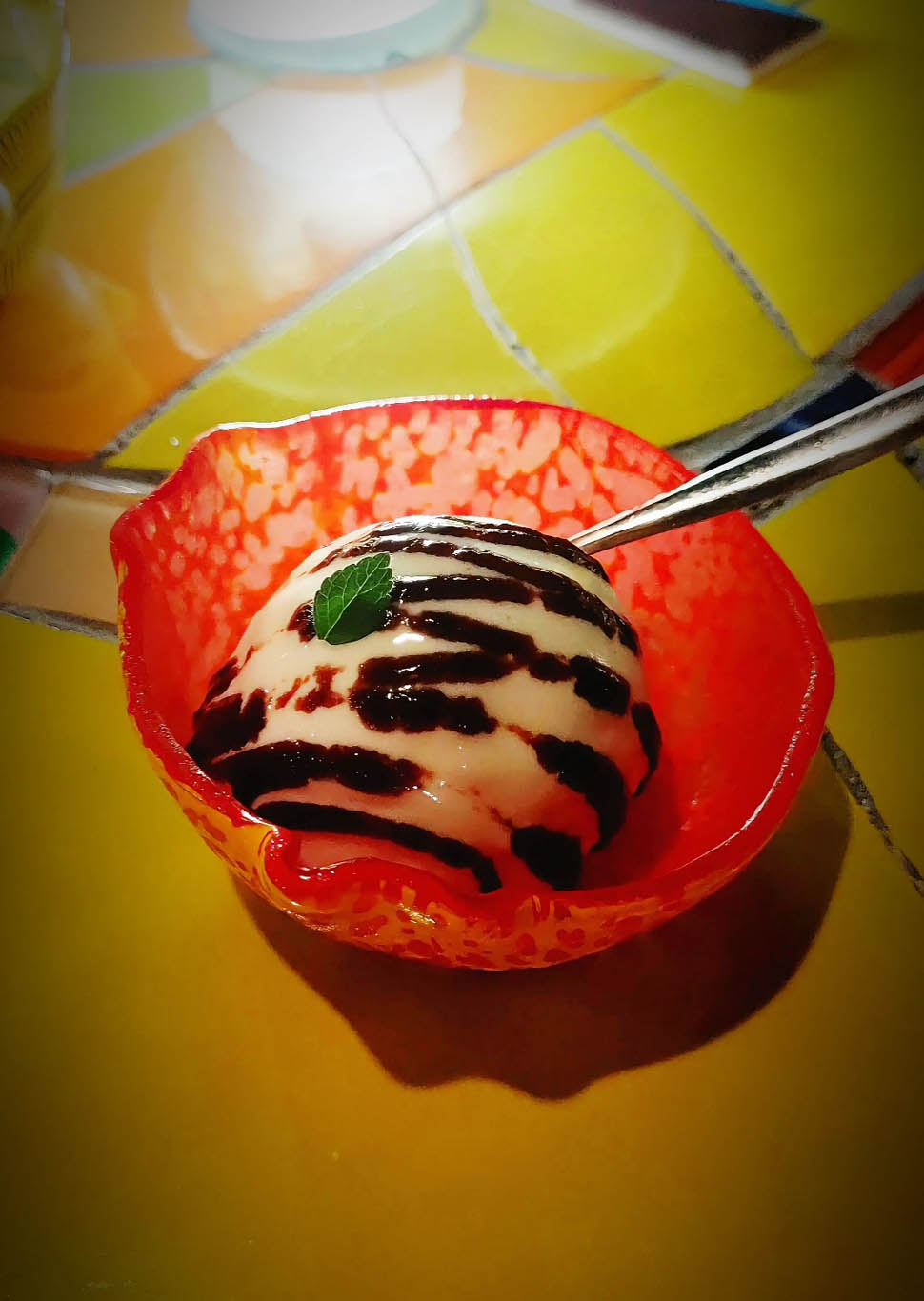 A conclusione di questo percorso il “Carrello dei Gelati”, gelati artigianali prodotti direttamente in cucina: la Stracchinella con mostarda bolognese e il Gelato Malaga. Entrambi richiamo al passato: la stracchinella ricorda il modo tradizionale dei nostri nonni e bisnonni di concepire il fine pasto, un formaggio con un’acidità spinta mitigata dalla dolcezza della mostarda. Il gelato Malaga è un’”operazione nostalgia” vera e propria che riporta direttamente agli anni ’80: una crema bolognese gelato arricchita da un’uvetta in osmosi nel rum che Max Poggi commenta così: “Non lo fa più nessuno ma si mangia sempre volentieri”.
